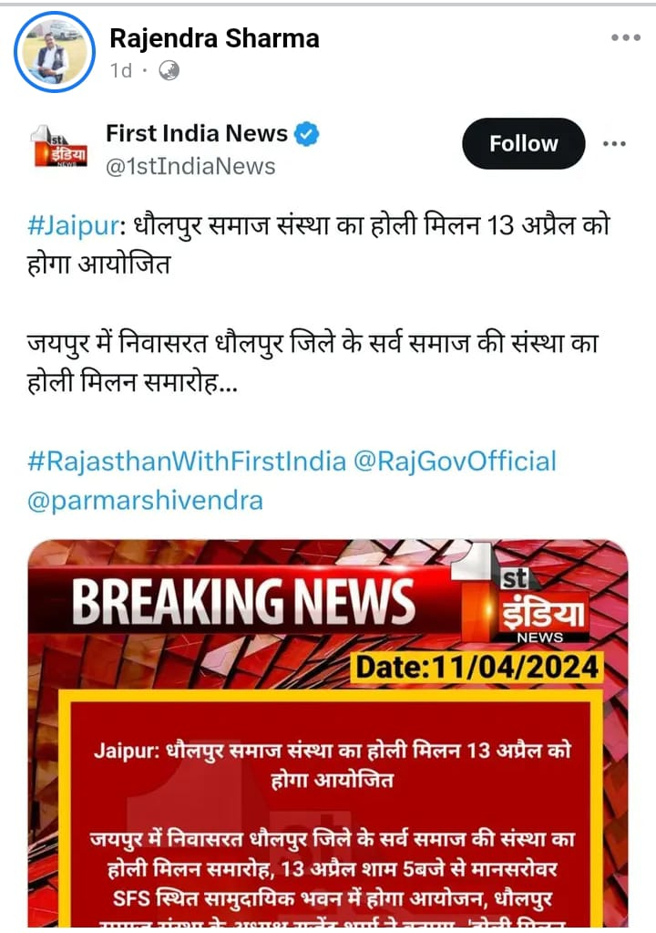 महासचिव - धौलपुर समाज संस्था जयपुर